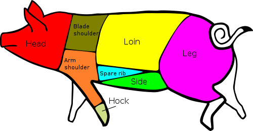 I wanted to make a short article with pictures of the different cuts of pork, beef and lamb to help you diversify your next visit at the butcher. Keep in mind that the parts of the animal where the muscles are used most often will be the toughest and therefore need longer and slower cooking (braising and stewing for example). Don’t skip them though, cooked gently in a liquid, you’ll get delicious meat for a smaller price tag. Tender cuts can be cooked rapidly and make great last minute meals.